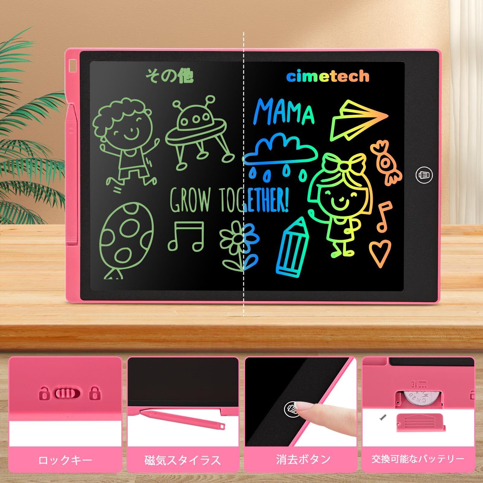Cimetech LCD 書き取りタブレット 12インチ 幼児向け汚れ知らず塗り絵ブック(2~8歳)落書きボード 描画パッド 男の子 女の子 向けギフト車中遊び 繰り返し使える教育用トラベルおもちゃ 横19.0 cm x 高さ27.8 cm - ピンク