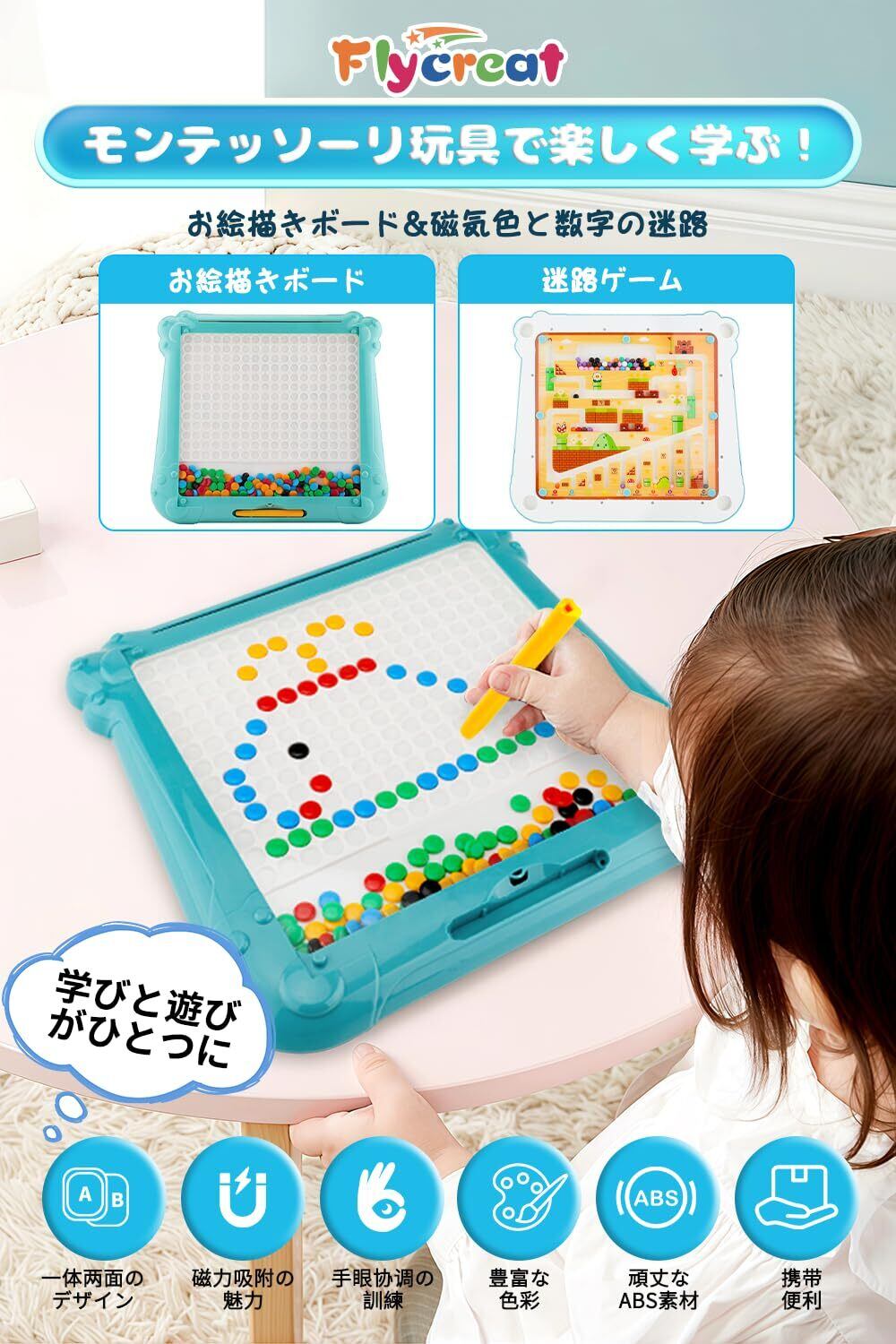 FlyCreat お絵描きボード マグネットボード おもちゃ - お絵かきボード モンテッソーリ 知育玩具 磁気ボード 磁気色と数字の迷路 色分類ゲーム お絵描き パターンパズル 指先遊び 色遊び 図案帳10枚 両面一体 教育用 脳トレ 子供向け 誕生日 プレゼント