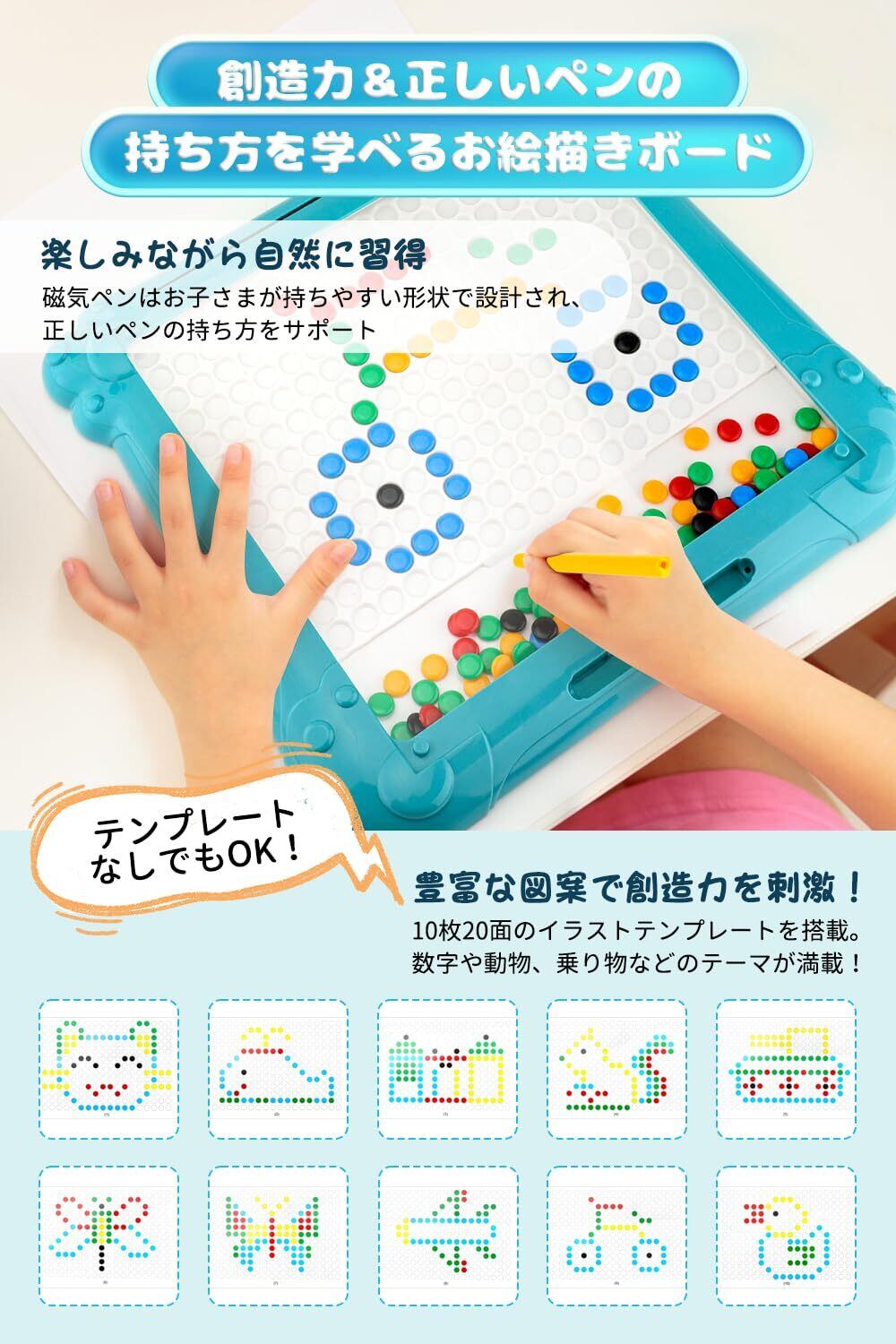 【色彩豊かな創造の世界へ】FlyCreatの磁気お絵描きボードは、お子様の想像力と創造力を引き出す理想的なツールです。磁性ペンを使って、内蔵された多色の磁気ビーズを自由自在に動かし、オリジナルの絵を描くことができます。付属の図案紙10枚(計20種類)には、多彩なパターンがデザインされており、子供たちが色の使い方を学びながら、自分らしい作品を生み出す楽しさを味わえます。自由な発想で描く過程で、色彩感覚や手先の器用さを自然に育みます。