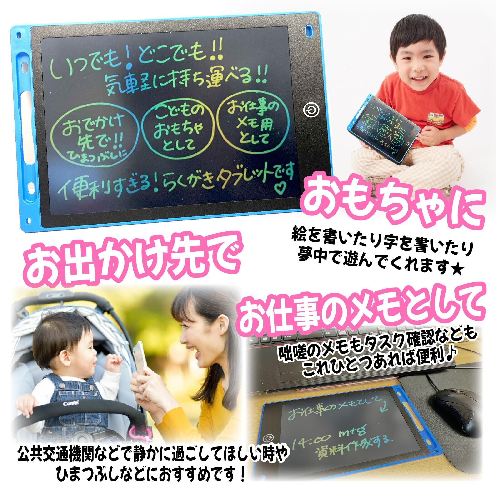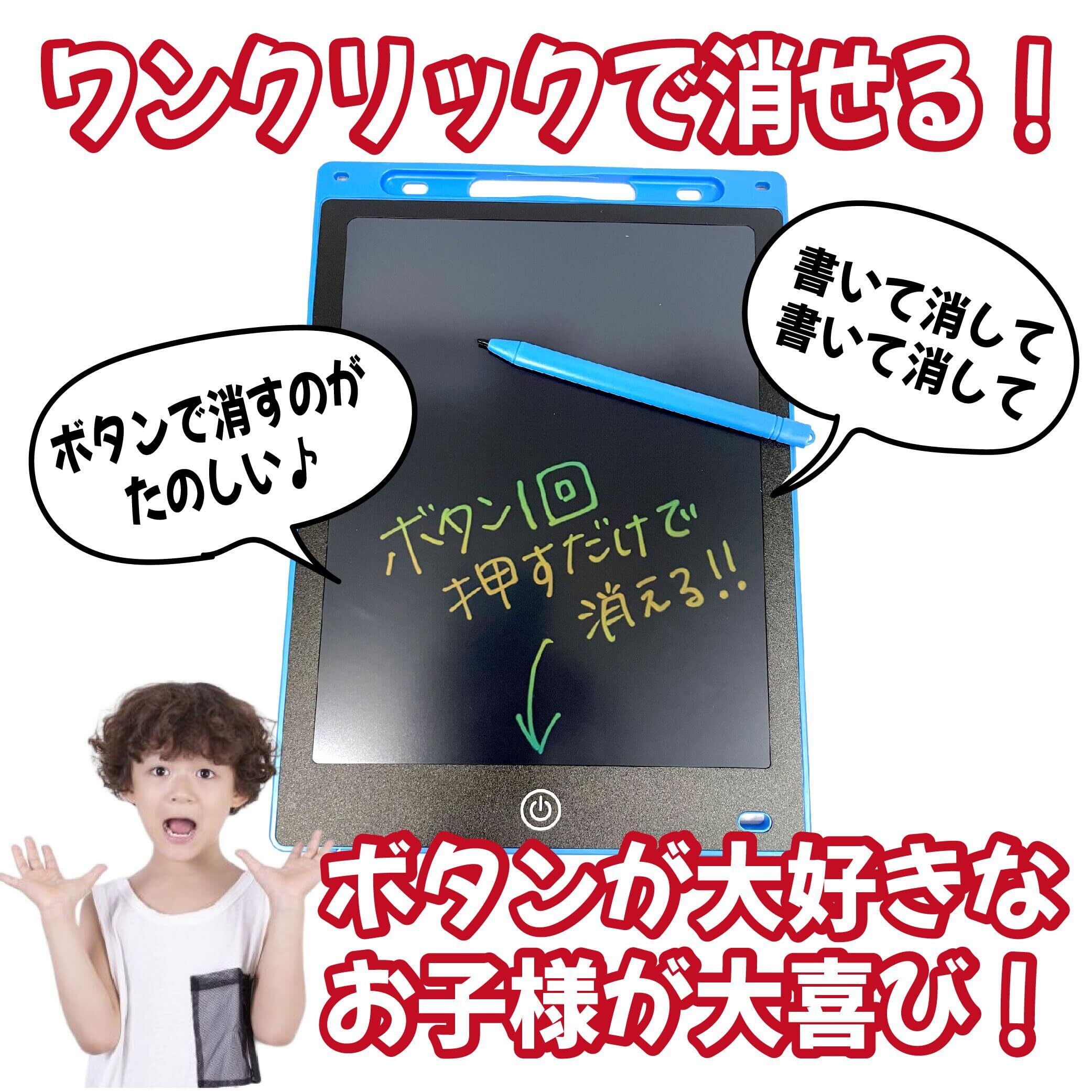 お絵描き ボード タブレット パッド 電子メモパッド おもちゃ 子供 電池式 らくがき ノート ペン メモ ロック機能 一時保存 学習 塗り絵 落書き 知育玩具 女の子 男の子 誕生日(12インチ ブルー)
