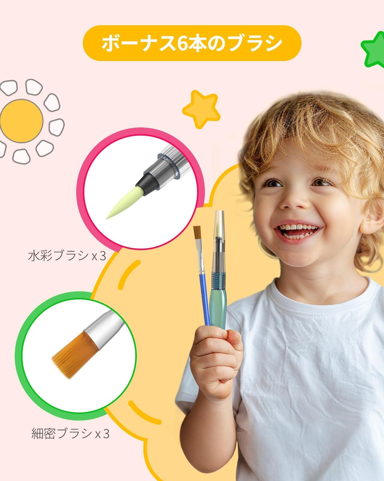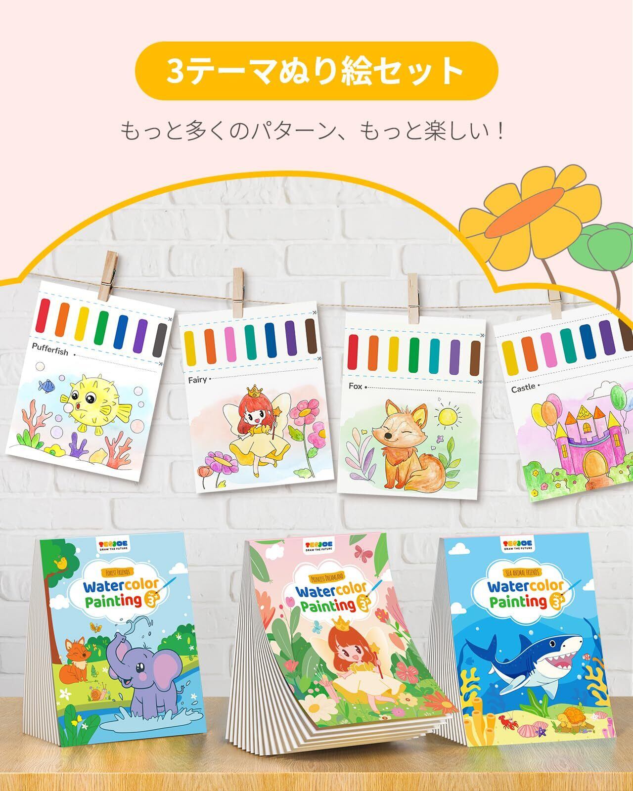 【成長を応援するギフト】水彩ぬりえを通じて手と目の協調性や色彩認識力を育みます。親子で一緒に楽しめ、遊びながら学ぶ体験が可能です。男の子・女の子にぴったりな知育&創造力おもちゃ。誕生日やクリスマス、入園祝い、旅行中の暇つぶし、イースターや感謝祭のプレゼントとしても人気の水彩絵の具です。