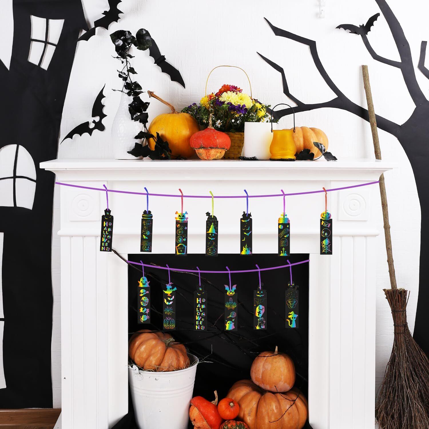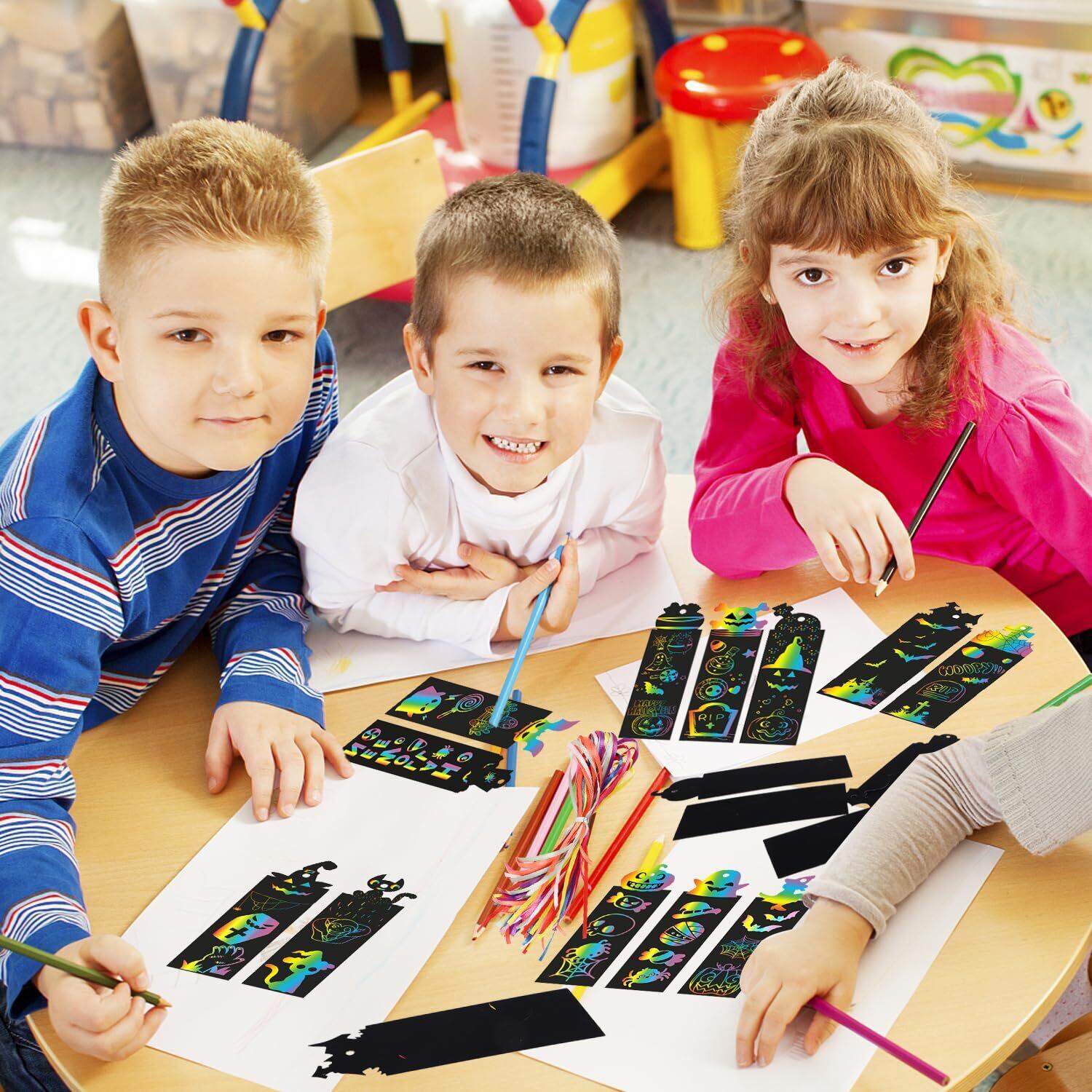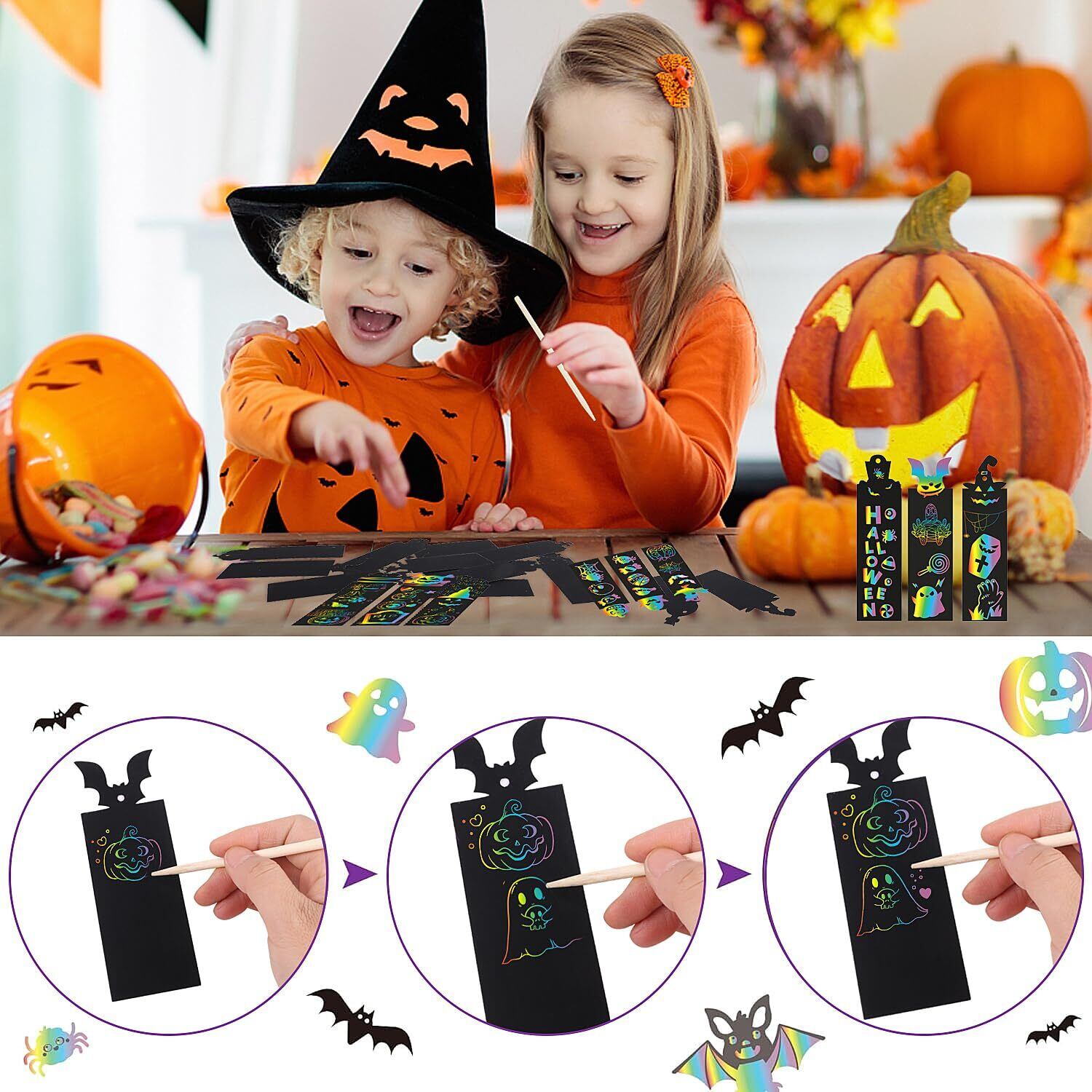 FINGOOO ハロウィン スクラッチアート 48枚 しおり ブックマーク おしゃれ 塗り絵 お絵描き 工作 DIY 手作り プレゼント 無地 虹絵ー (スクラッチアート)
