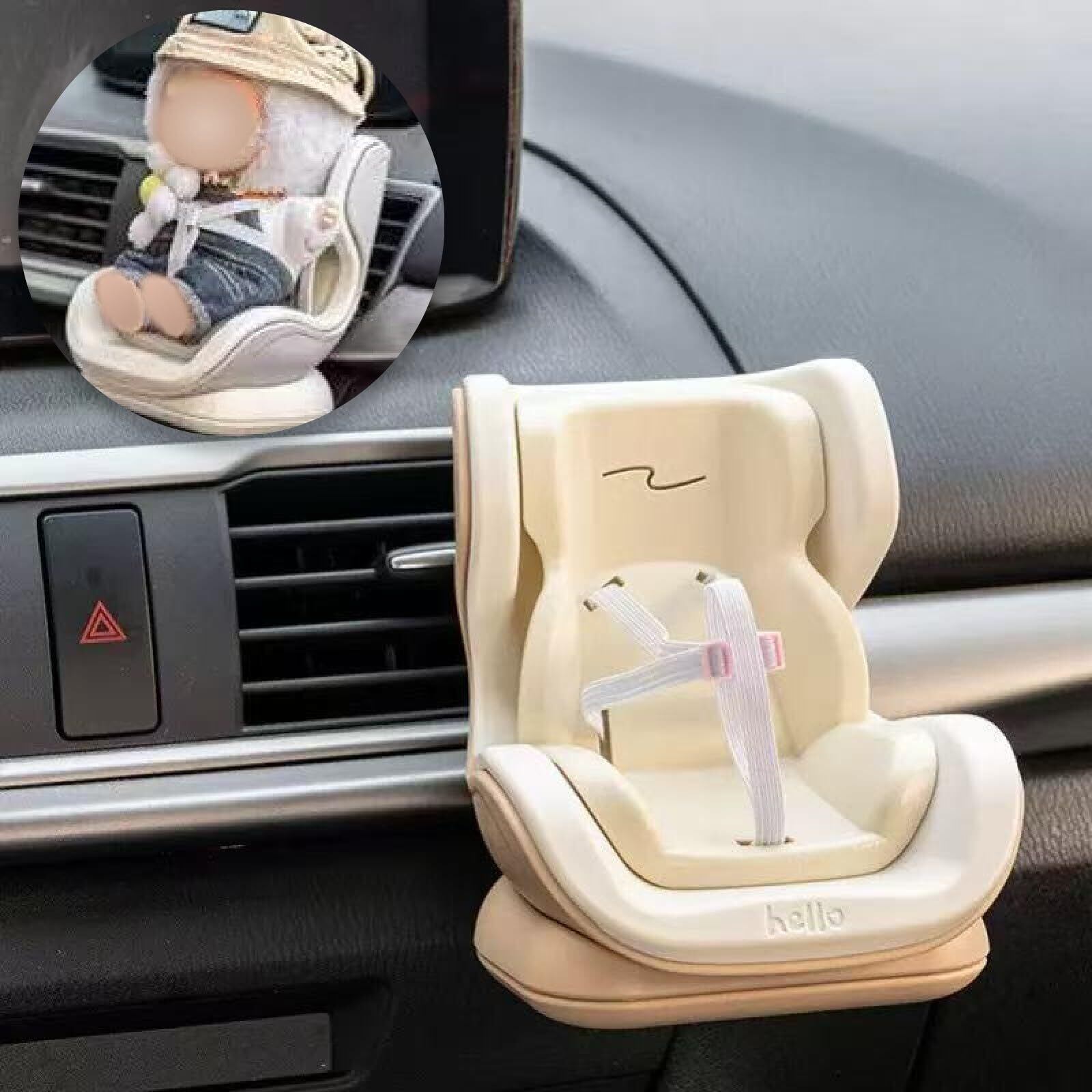 Yoiumicyドールカーシートベントクリップ、 小さな人形の安全シート、車載アダプター付き 滑り止め設計 机の上でも使用可能 キャラクターシートベルト 室内装飾用 (A)