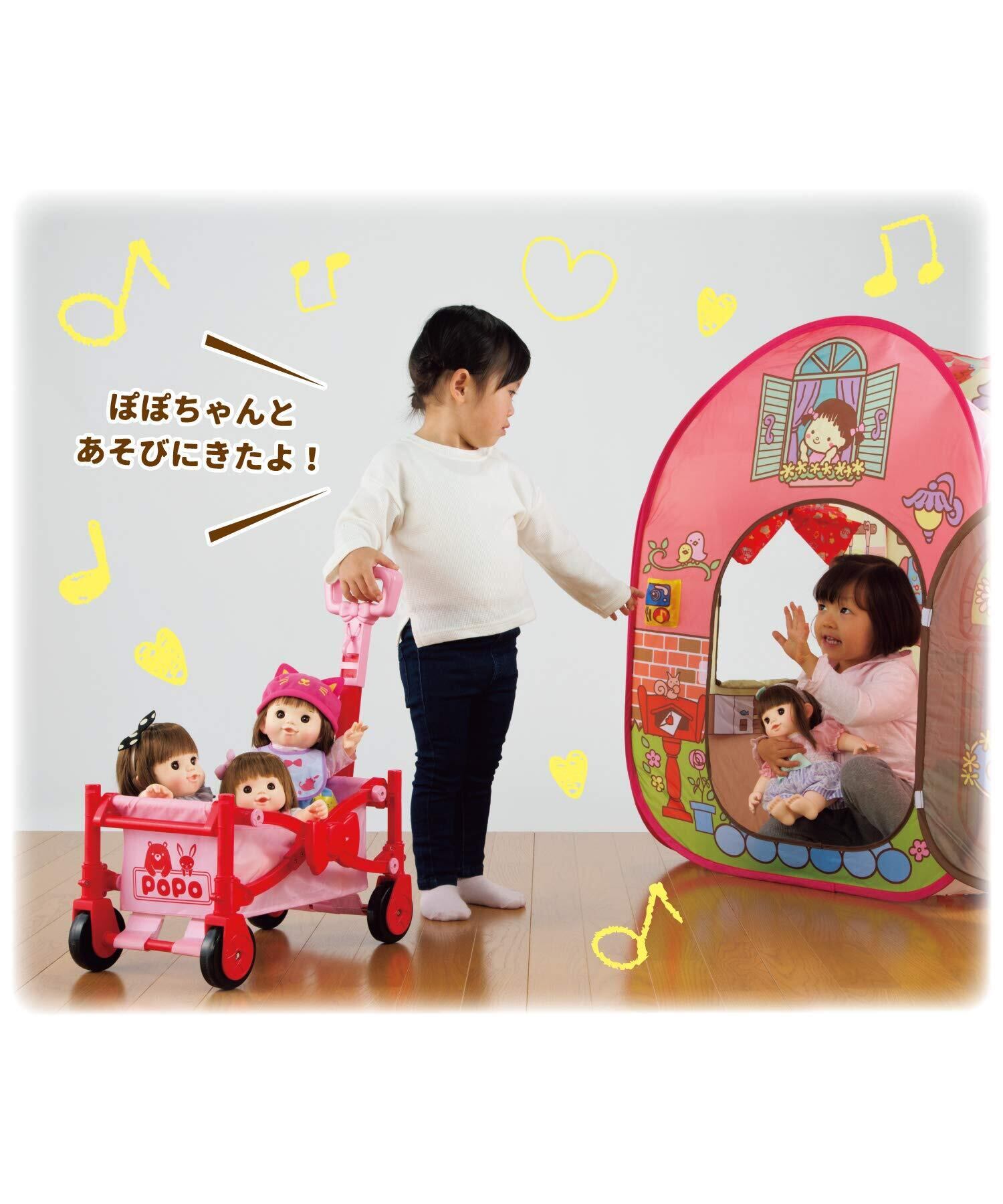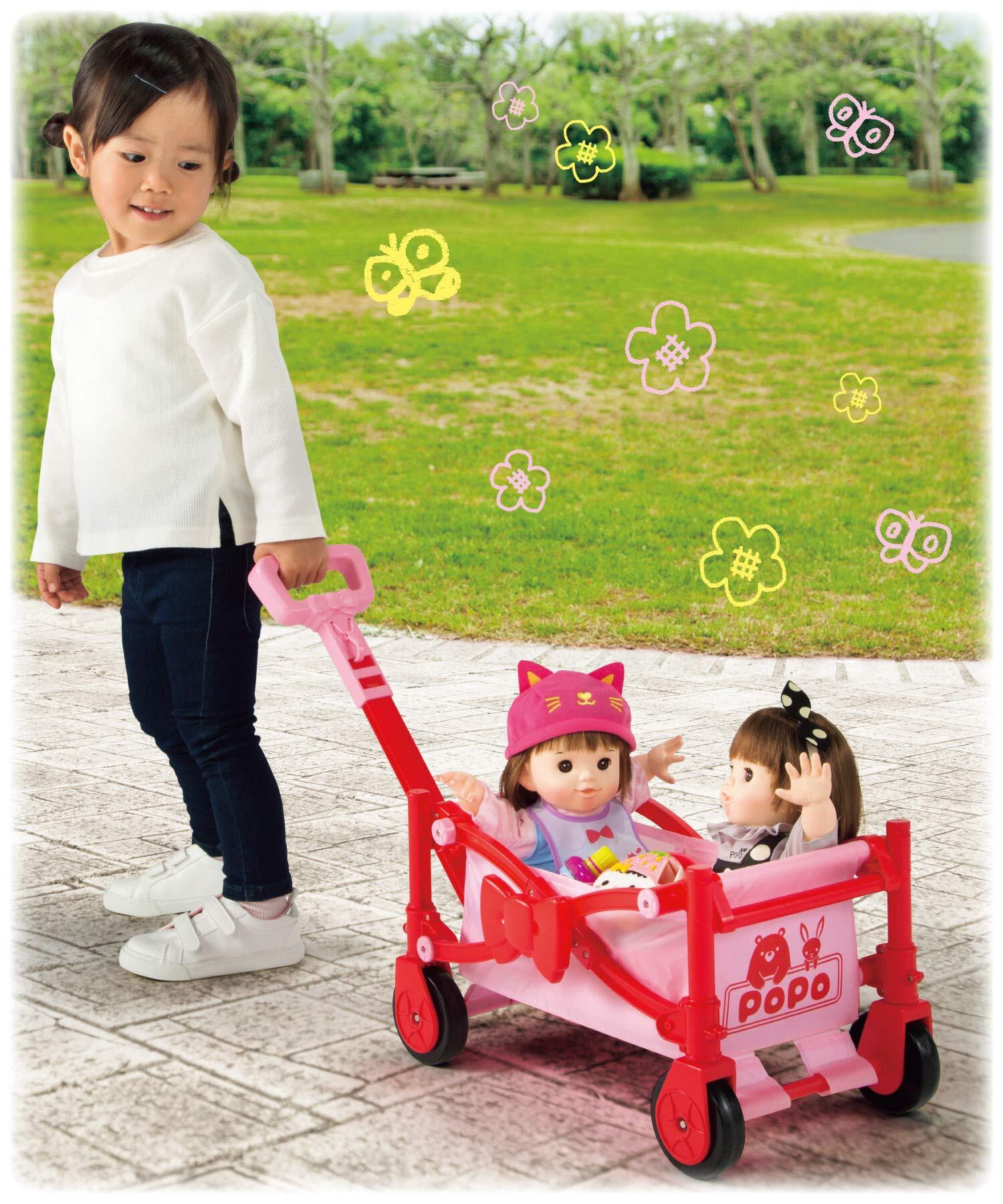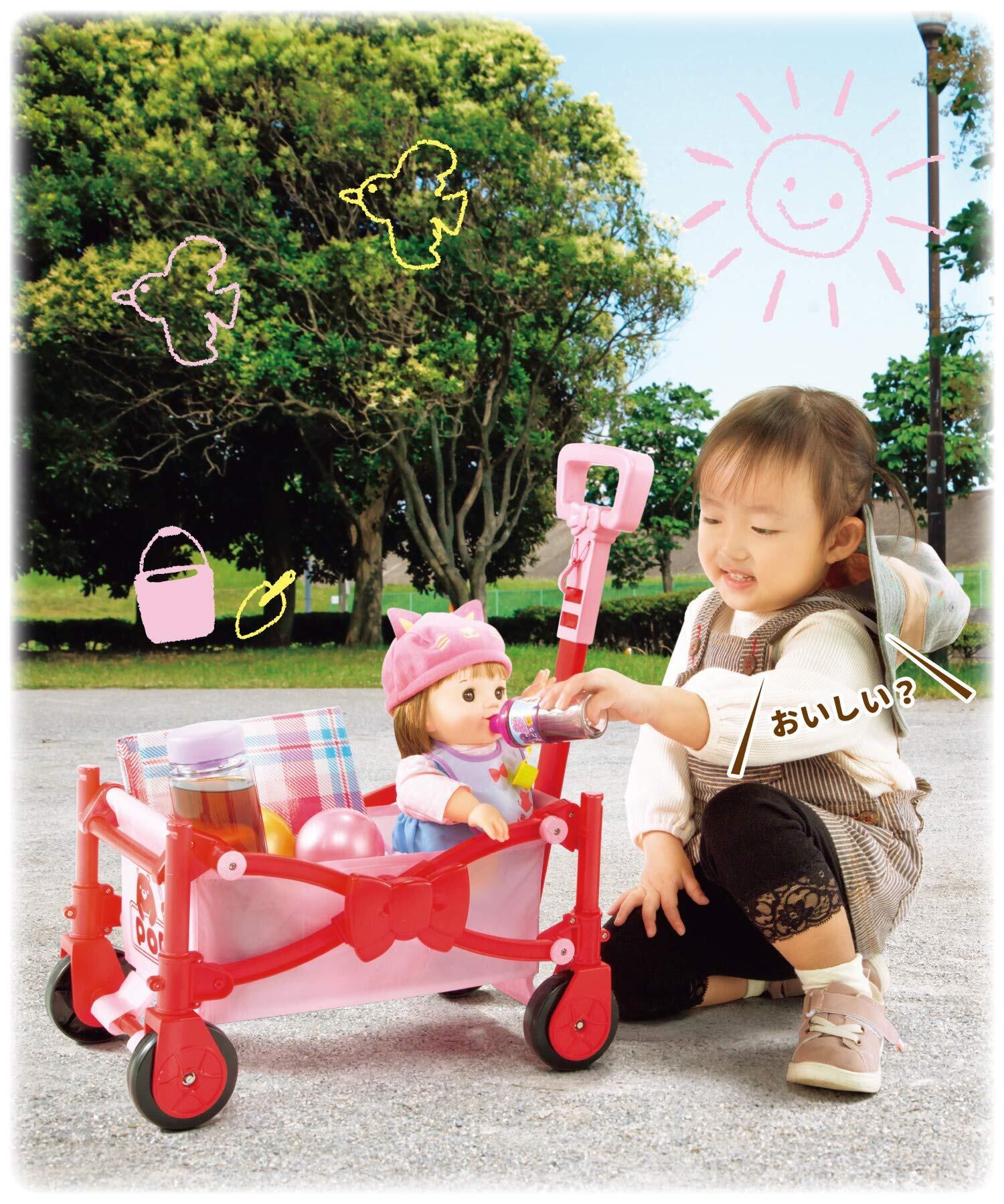 ぽぽちゃんと一緒にお出かけしたいお子様にぴったり。屋外でも遊べる本物そっくりな、ぽぽちゃん向けのアウトドアワゴン。