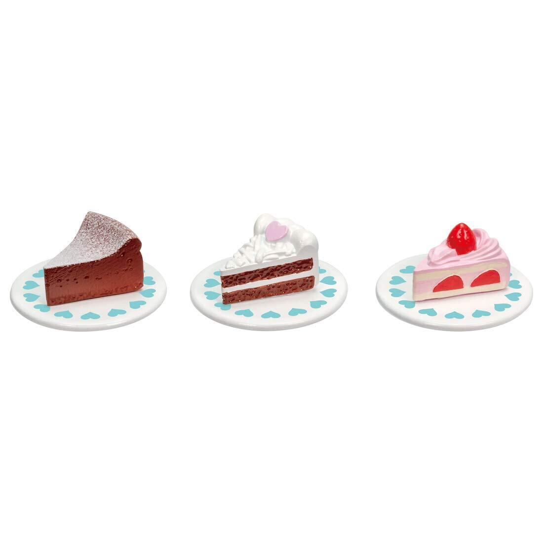 ケーキとお皿が3セット付いています。