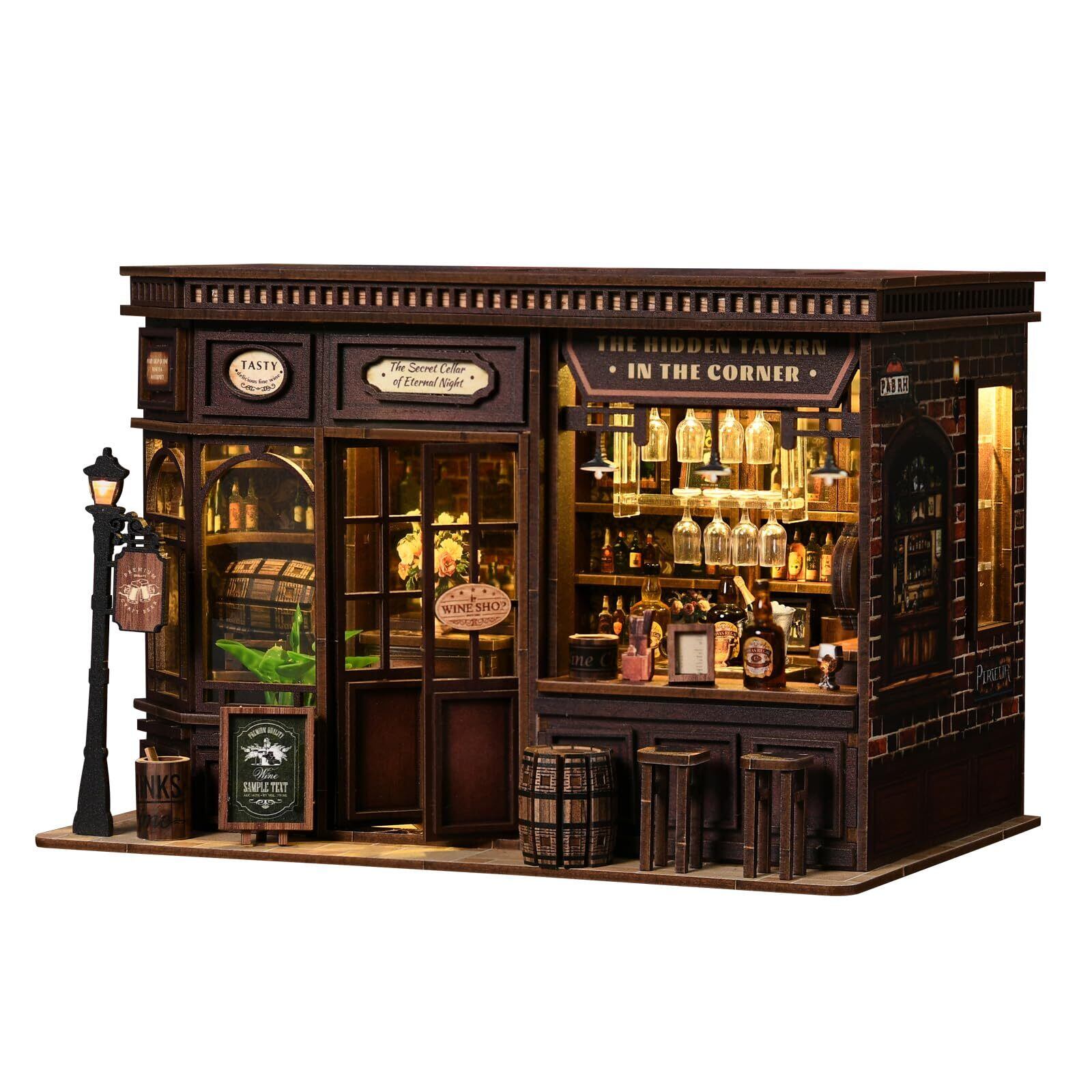 CRESYMME ミニチュアハウス ドールハウス ブックヌック キット 木製 DIY 立体 趣味 手作り(角の小さな酒場)