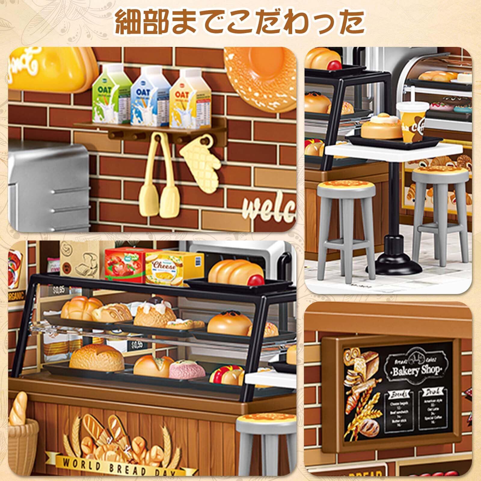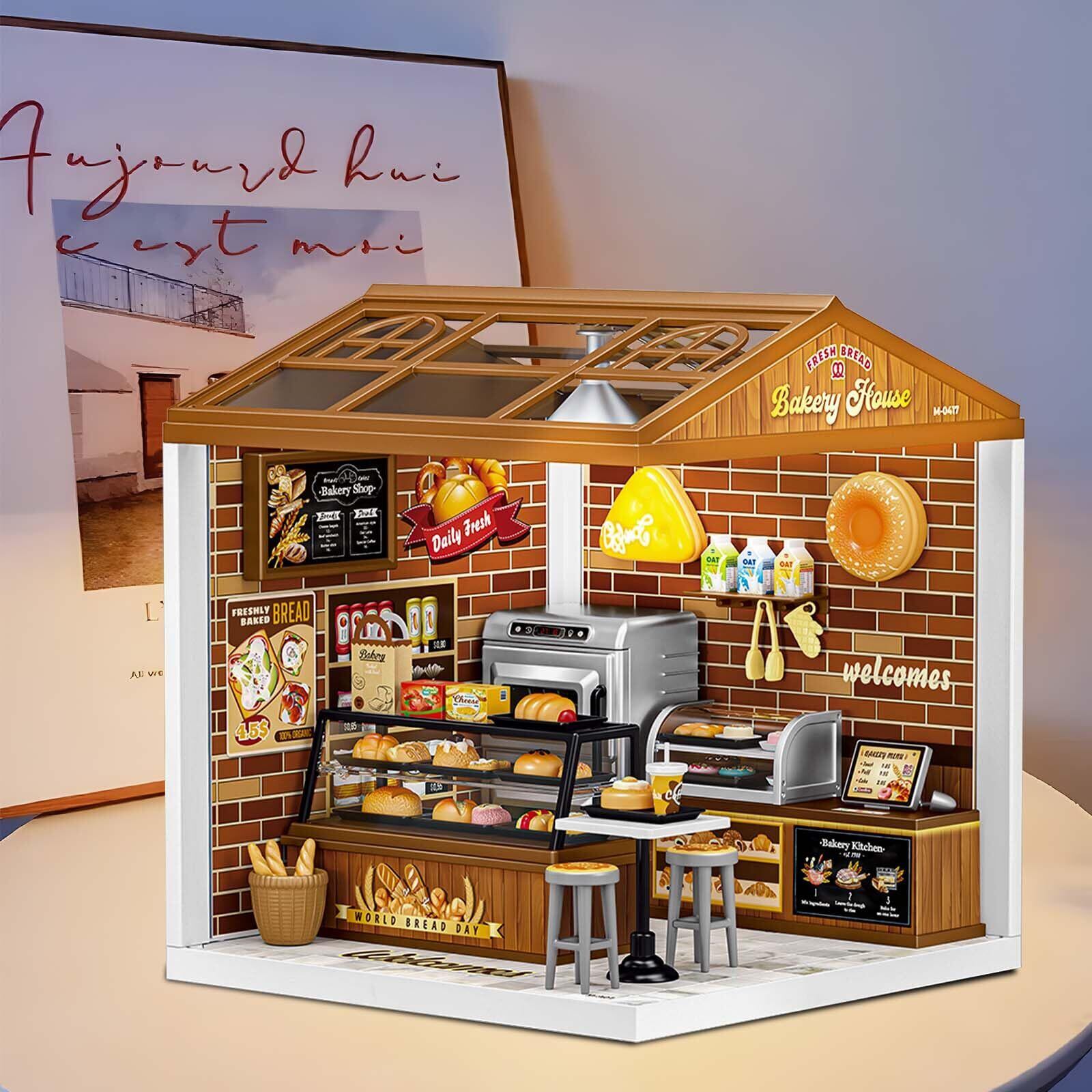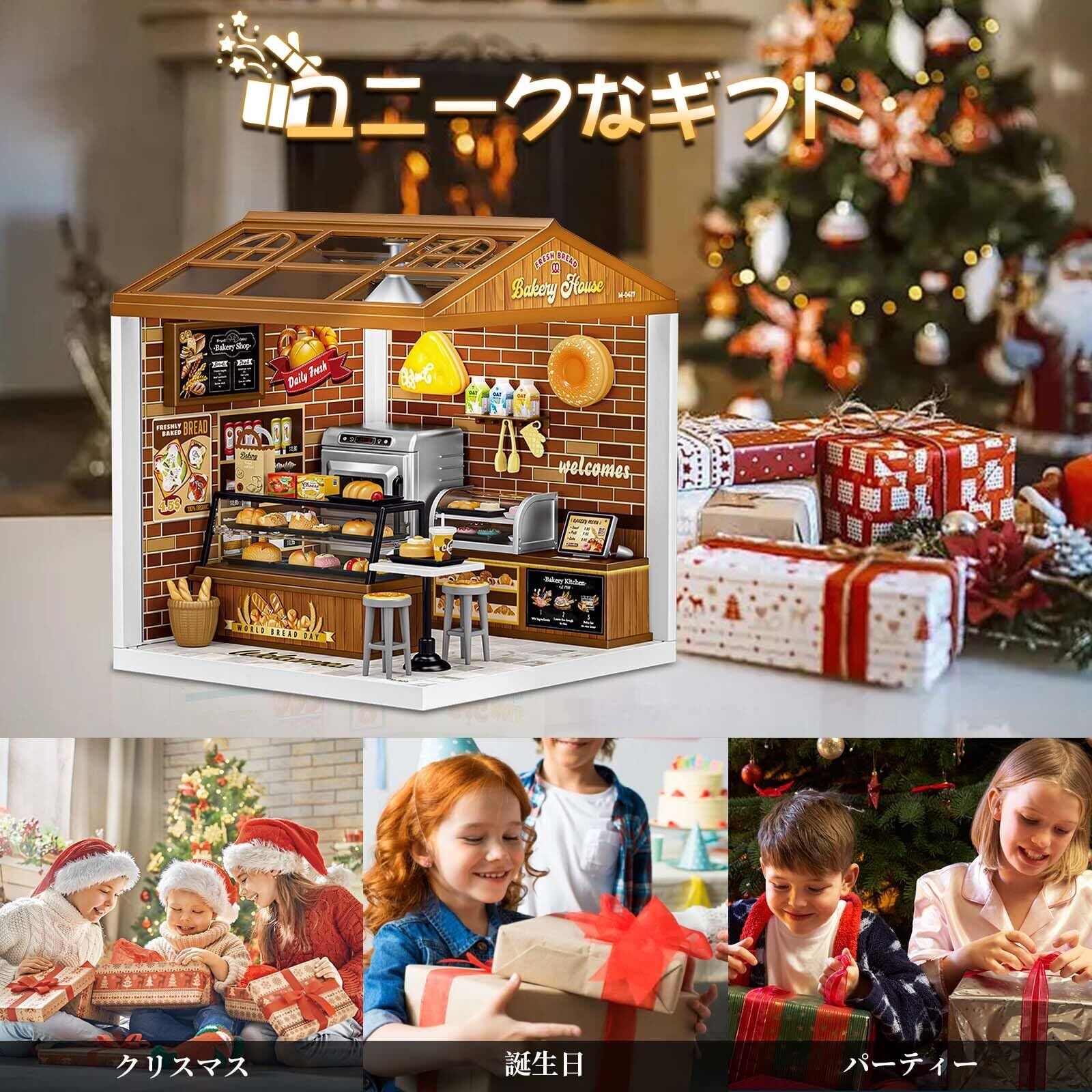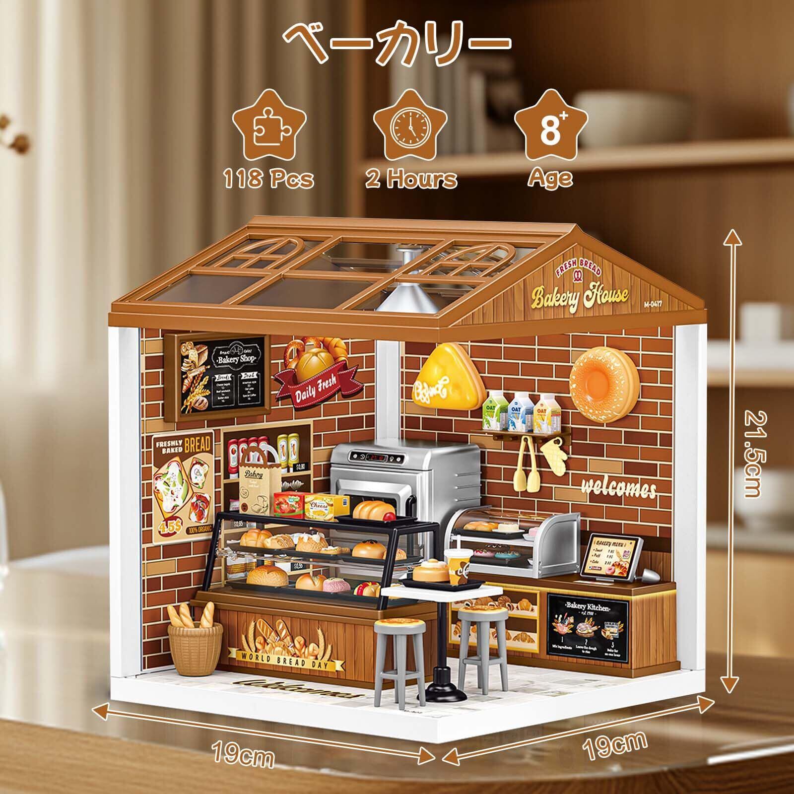 Hallisun DIYミニチュアハウスキット プラスチック ドールハウス 家具セット おもちゃ フィギュア 人形用ハウス USBライト機能搭載 防塵カバーと屋根付き 小さな家 3Dパズル プレゼント クラフト組立おもちゃ 子供8歳+ 大人向き (ベーカリーハウス 118pcs)
