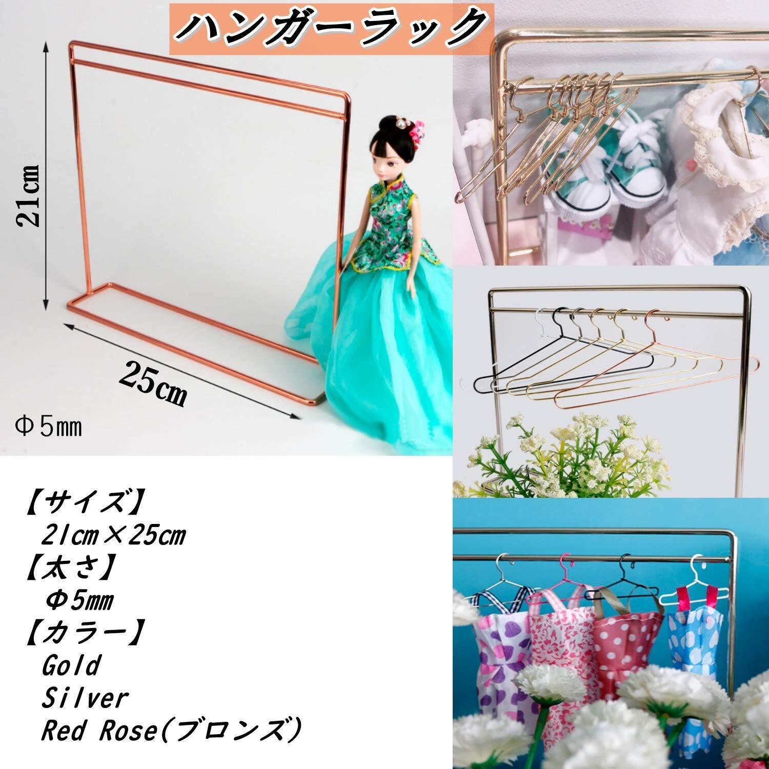 【サイズ】ハンガーラック:21×25㎝ Φ5㎜ ミニハンガー:6.5×3.5㎝ Φ1.2㎜ 【カラー】ゴールド・シルバー・ローズゴールド(ブロンズ)※お使いのモニターにより若干色の誤差がございます。