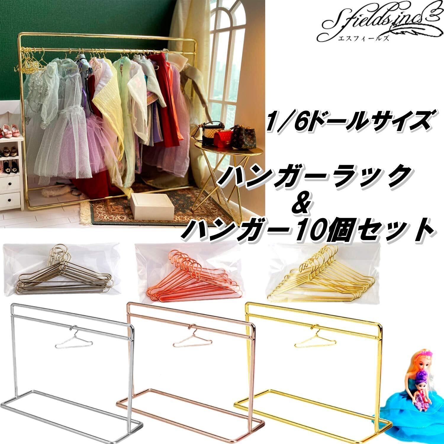 S.fields.inc 人形用 ハンガーラック ハンガー10個セット ドール服 1/6 BJD 着せ替え人形服 衣類ラック (シルバー)