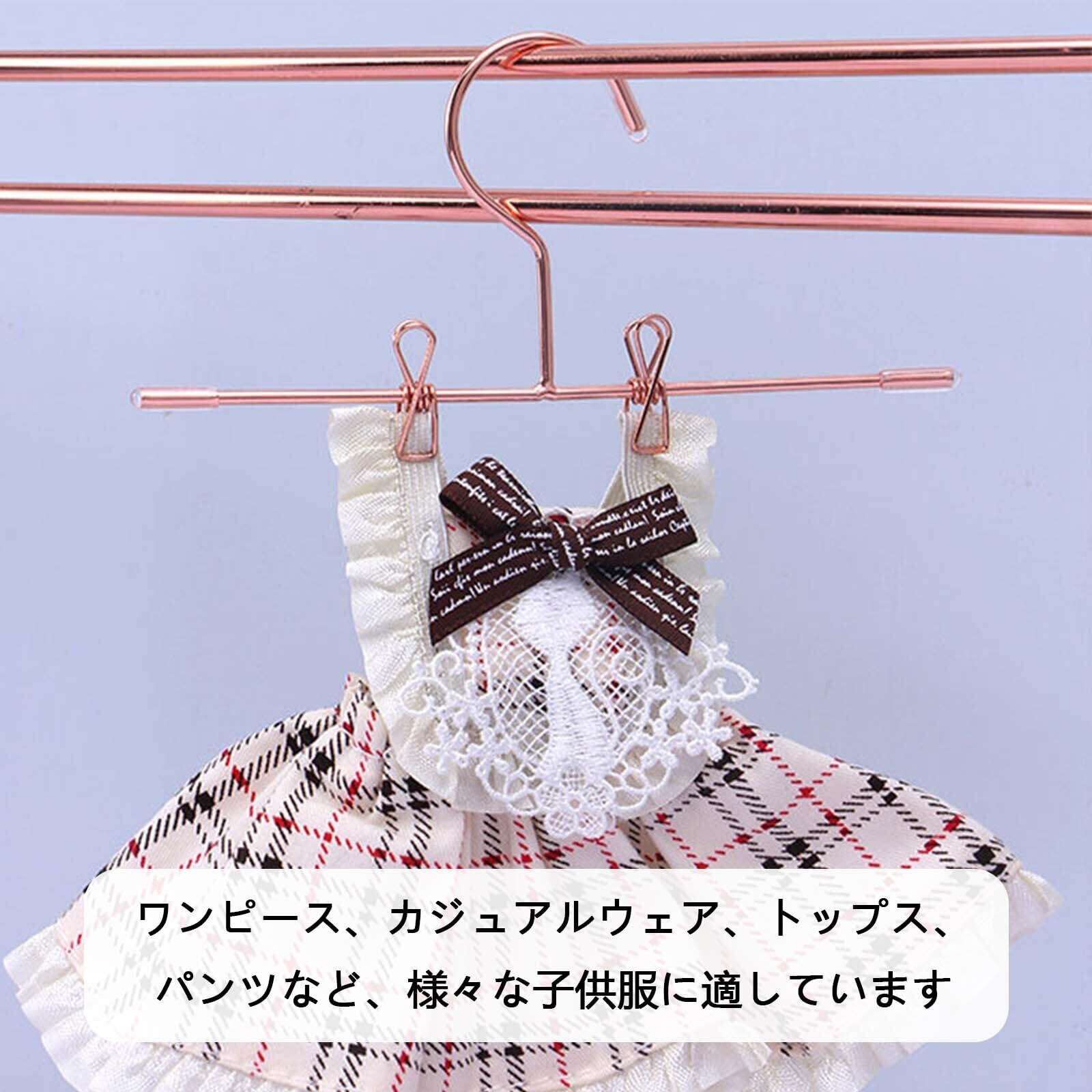 【商品説明】ミニハンガーサイズ: 約7.5*3.5cm: 色: ローズゴールド; 数量: 5個入り(モニターの発色の具合によって実際の商品との色が若干異なる場合も御座いますのであらかじめご了承下さい。)これらの装飾的な人形用洋服ハンガーは、ドレス、カジュアルな服、トップス、パンツなど、さまざまな人形の服に適しており、ミニハウスに多用途の収納ソリューションを提供します。