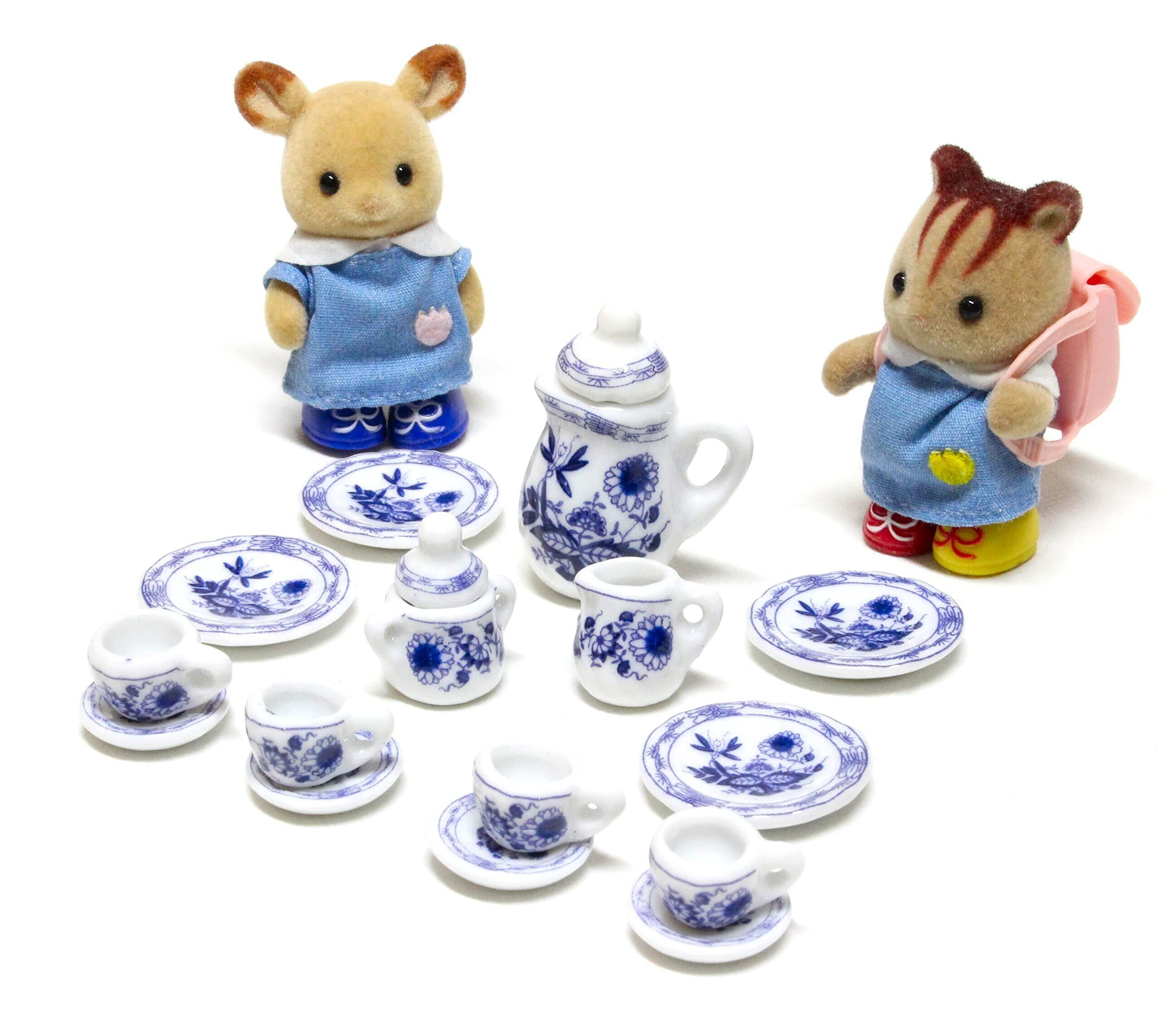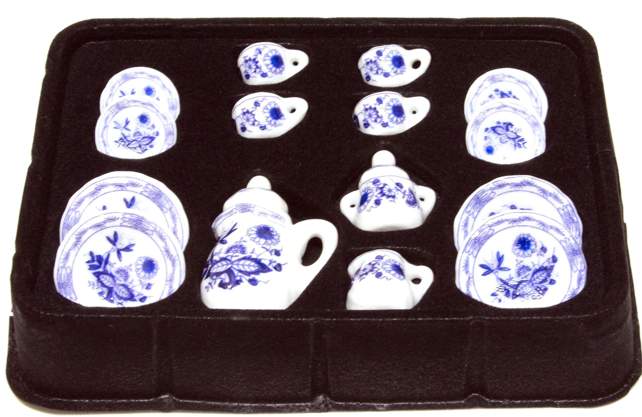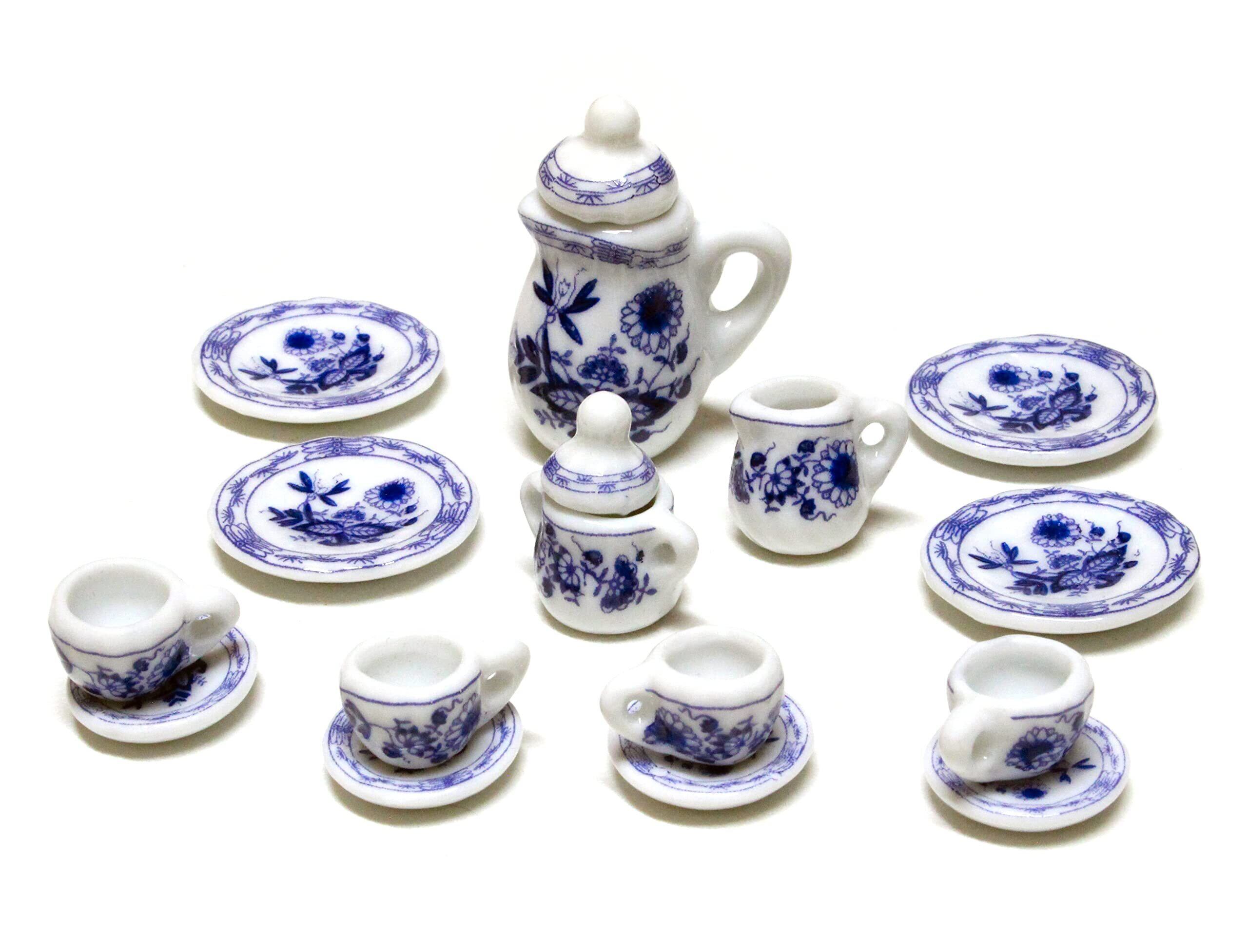 ミニチュア 洋食器 ティーセット 装飾用 ドールハウス ソーサー カップ 皿 ポット (ブルー)