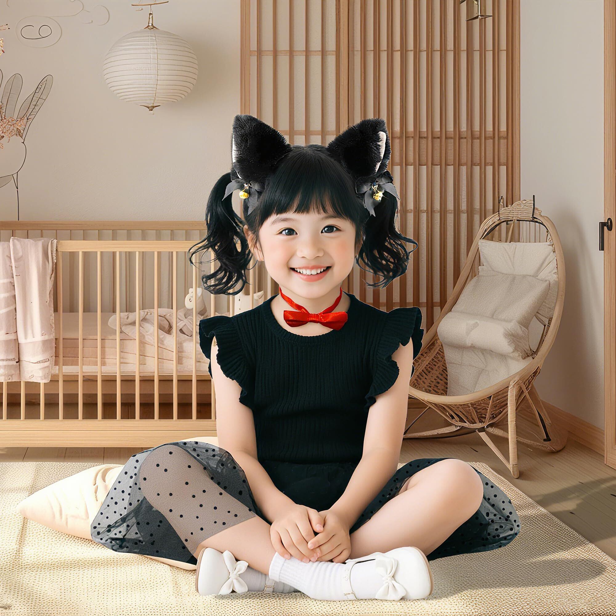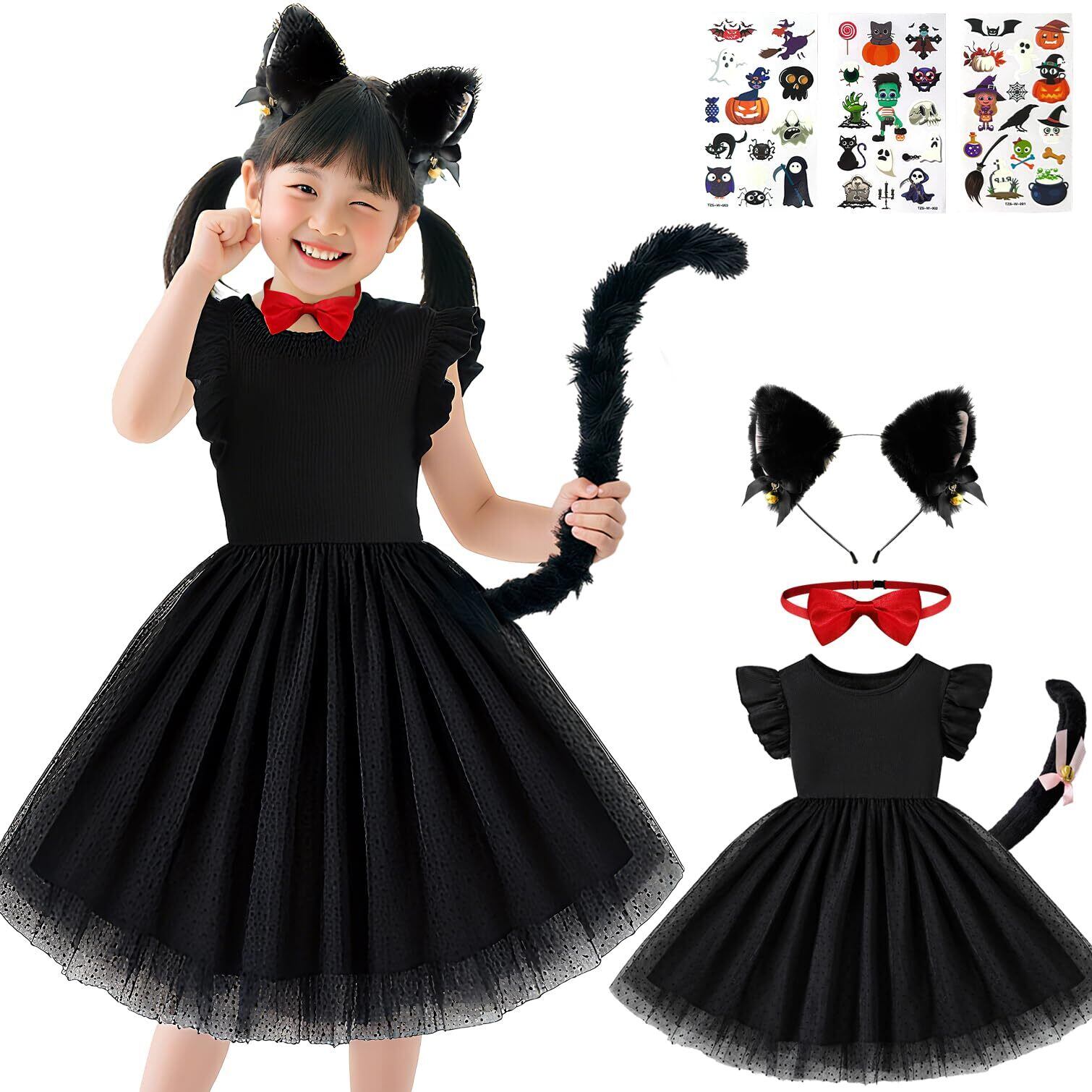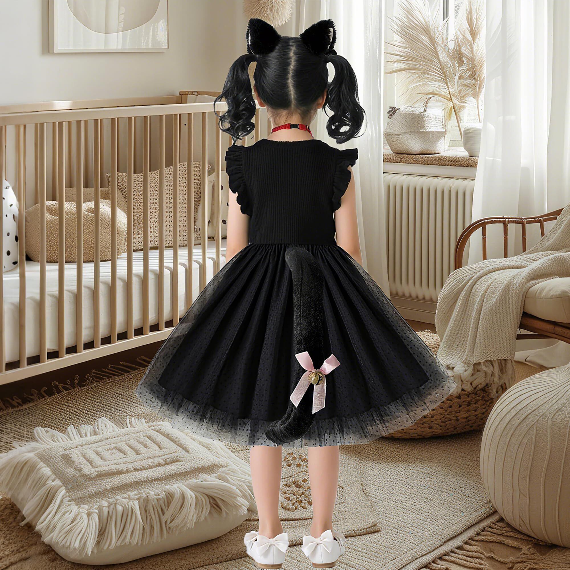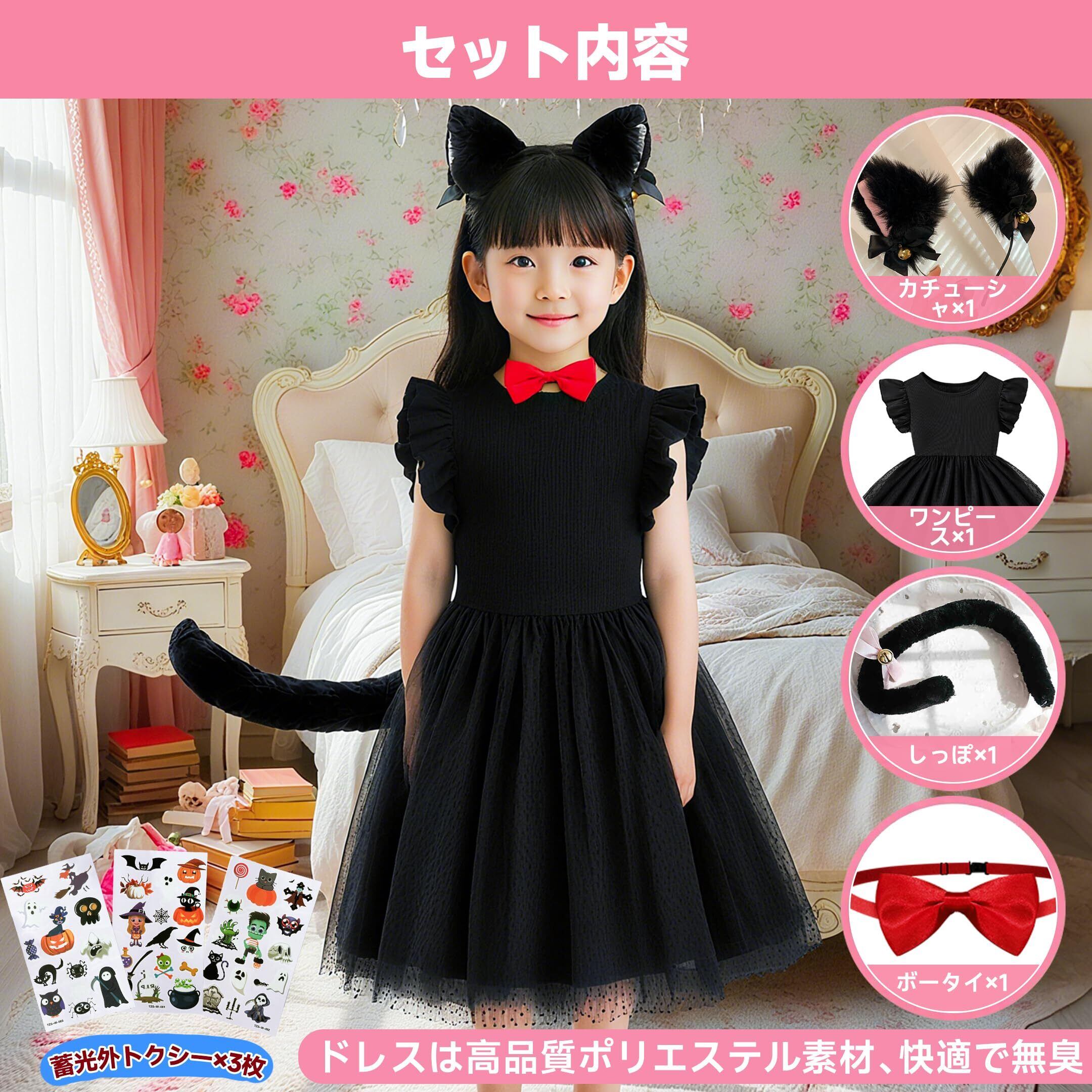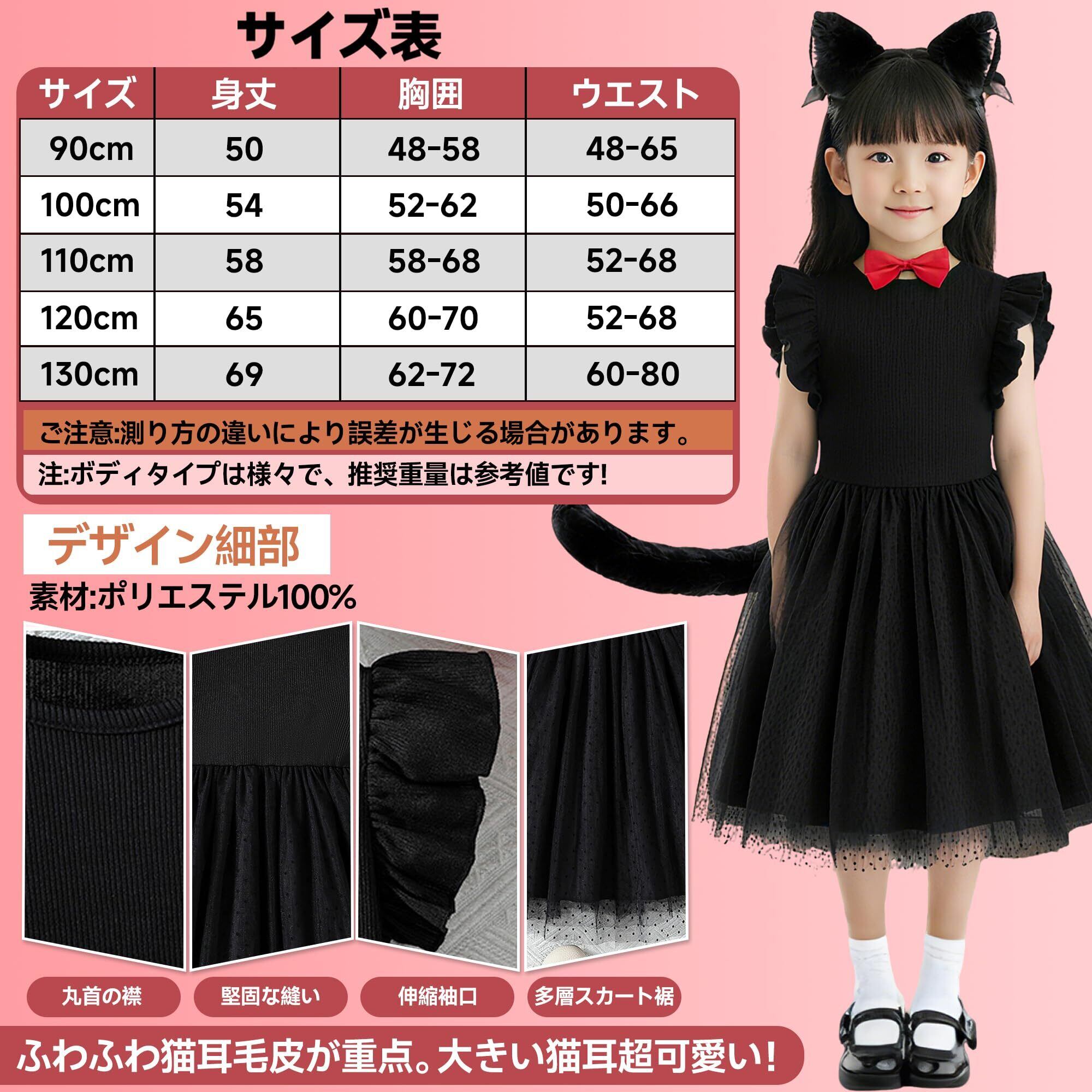 [Goreson] 猫 コスプレ 黒猫 コスプレ 子供 ハロウィン 仮装 女の子 キッズ7点セット 子ども 可愛い 着脱簡単 90~130cm ブラック