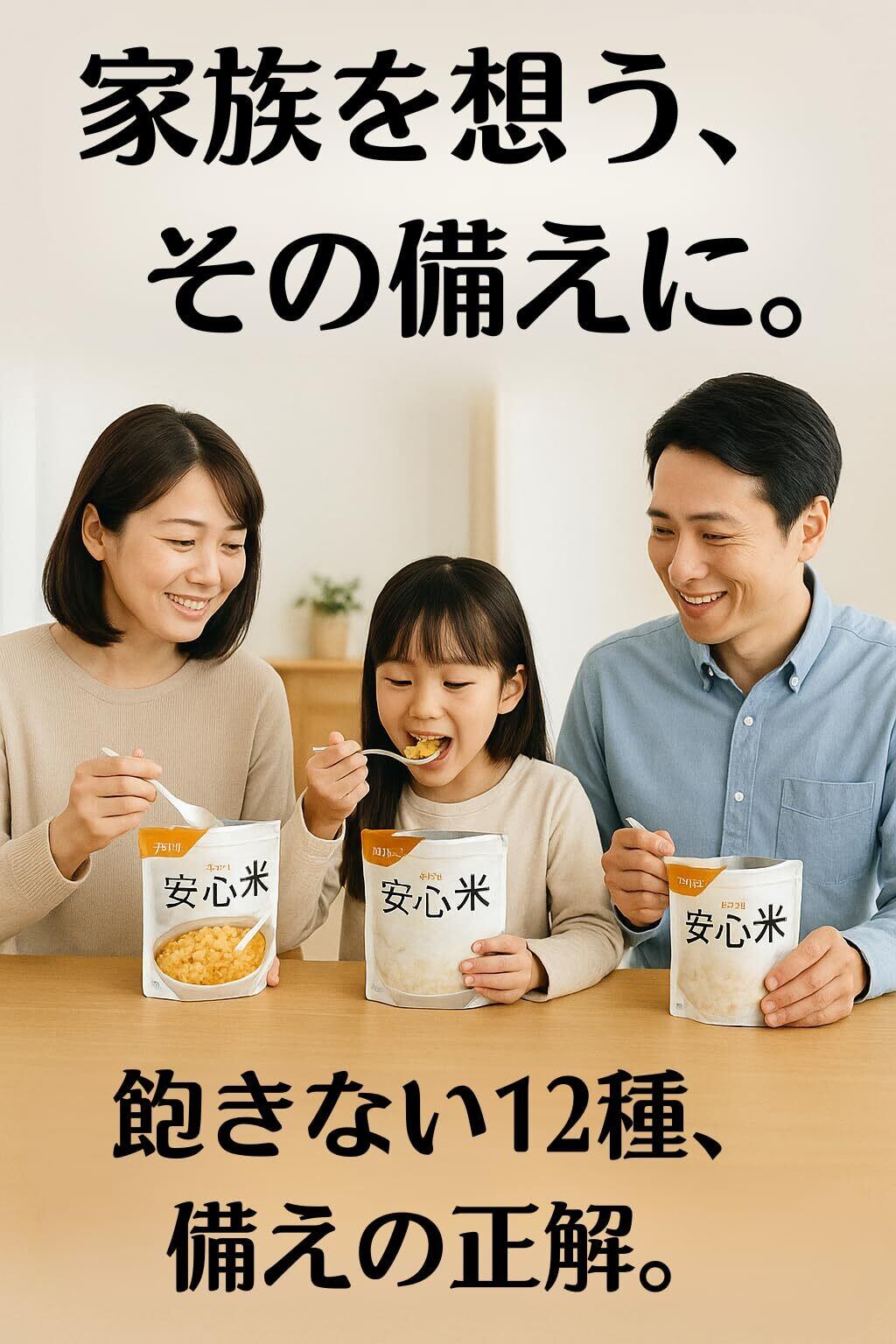防災士監修の非常食「安心米」12種セット。お湯や水で簡単調理、5年保存で災害時も安心。登山・キャンプの携帯食にも最適。