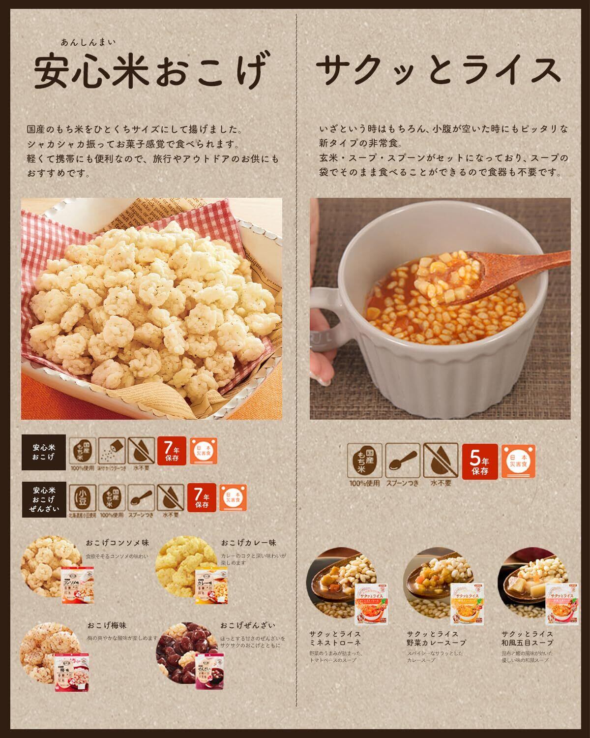 本商品は、製造から5年間の長期保存が可能で、災害時や非常食としても安心してご利用いただけます。しっかりとした備蓄をしておくことで、心配のない日常をサポートします。必要なときに、美味しい栄養を手軽に摂取できるため、特に防災意識の高い方におすすめです。